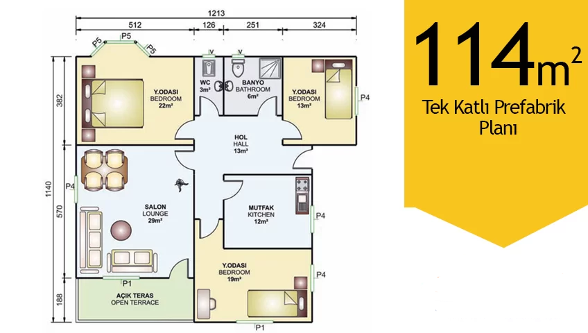 114 metrekarelik tek katlı prefabrik bir ev, aileler için geniş ve konforlu bir yaşam alanı sunar. Bu tür bir ev, modern yaşam tarzınızı yansıtmak için tasarlanabilir ve ihtiyaçlarınıza göre özelleştirilebilir. Hızlı inşaat süreleri ve enerji tasarrufu potansiyeli, prefabrik yapıları cazip bir seçenek haline getirirken, konforlu bir yaşam alanı sunar.